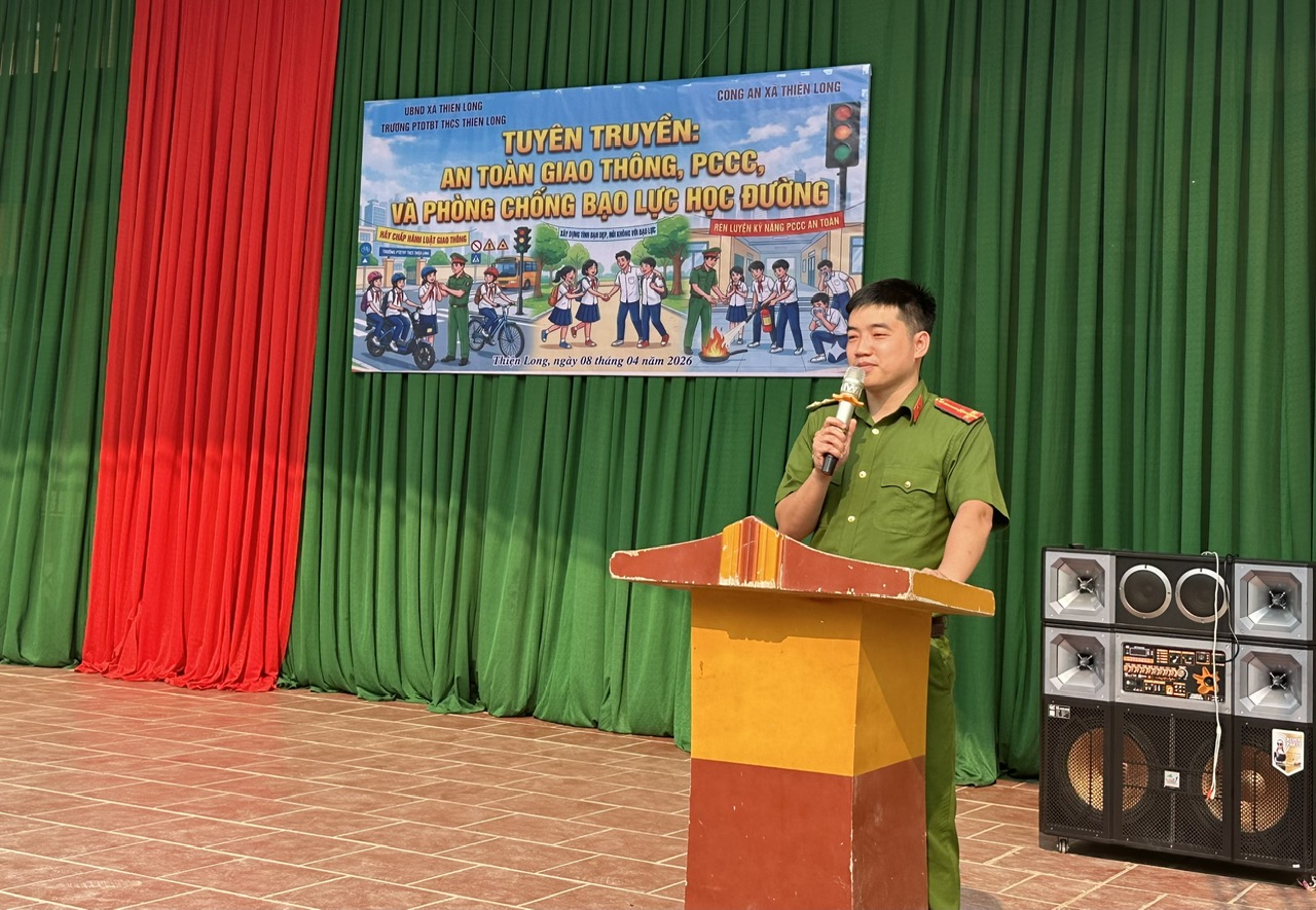 Chiều ngày 08/4/2026, Công an xã Thiện Long đã phối hợp với trường THPTDT BTTHCS Thiện Long tổ chức buổi tuyên truyền, phổ biến giáo dục pháp luật và trang bị kỹ năng sống cho cán bộ, giáo viên và học sinh nhà trường.