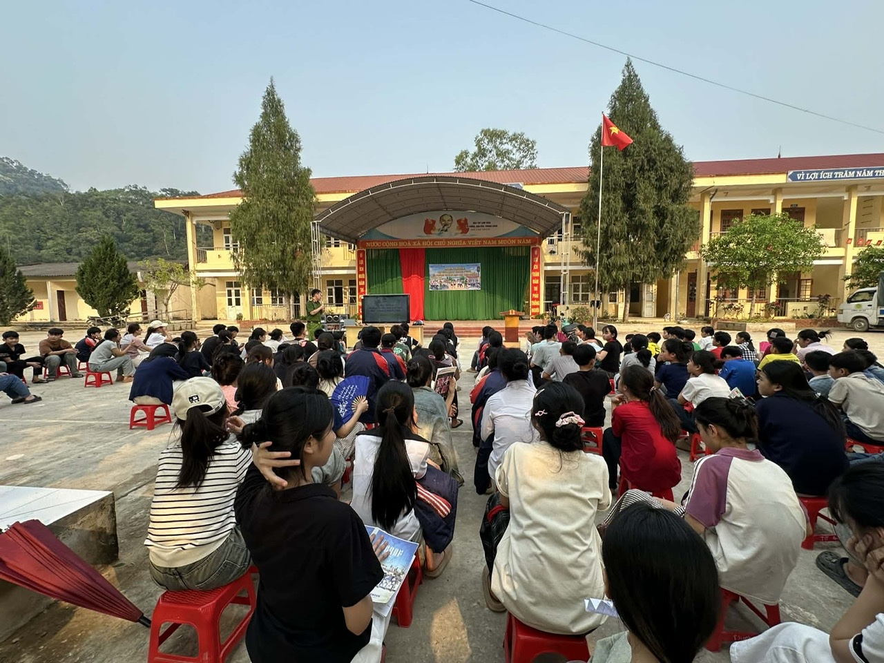 Tham dự buổi tuyên truyền có sự hiện diện của Ban Giám hiệu, cùng 26 cán bộ, giáo viên và hơn 150 học sinh trường PTDTBT THCS Thiện Long. Tại chương trình, cán bộ Công an xã Thiện Long đã trực tiếp truyền đạt những nội dung quan trọng, thiết thực và bám sát với thực tiễn lứa tuổi học đường: