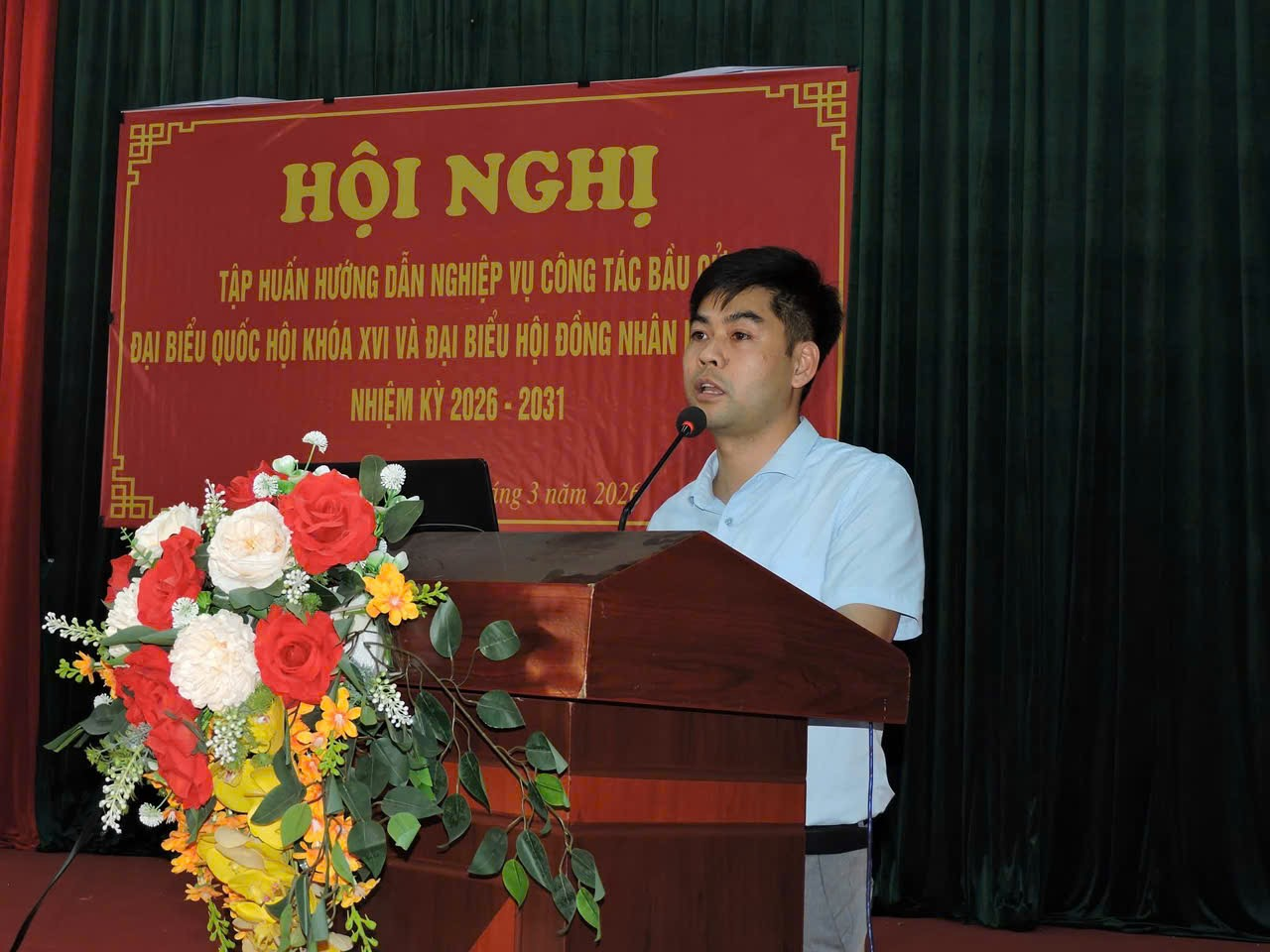 Tại hội nghị, các đại biểu được quán triệt những nội dung cơ bản, trọng tâm về công tác bầu cử đại biểu Quốc hội khóa XVI và đại biểu Hội đồng nhân dân các cấp nhiệm kỳ 2026 – 2031; triển khai các văn bản chỉ đạo, hướng dẫn của Trung ương và cấp trên; đồng thời phổ biến quy trình, thủ tục trong từng bước của cuộc bầu cử như: lập và niêm yết danh sách cử tri; lập danh sách người ứng cử; đẩy mạnh công tác tuyên truyền; chuẩn bị cơ sở vật chất; thực hiện nhiệm vụ của Tổ bầu cử; quy trình bỏ phiếu, kiểm phiếu; tổng hợp và báo cáo kết quả bầu cử theo đúng quy định của pháp luật.