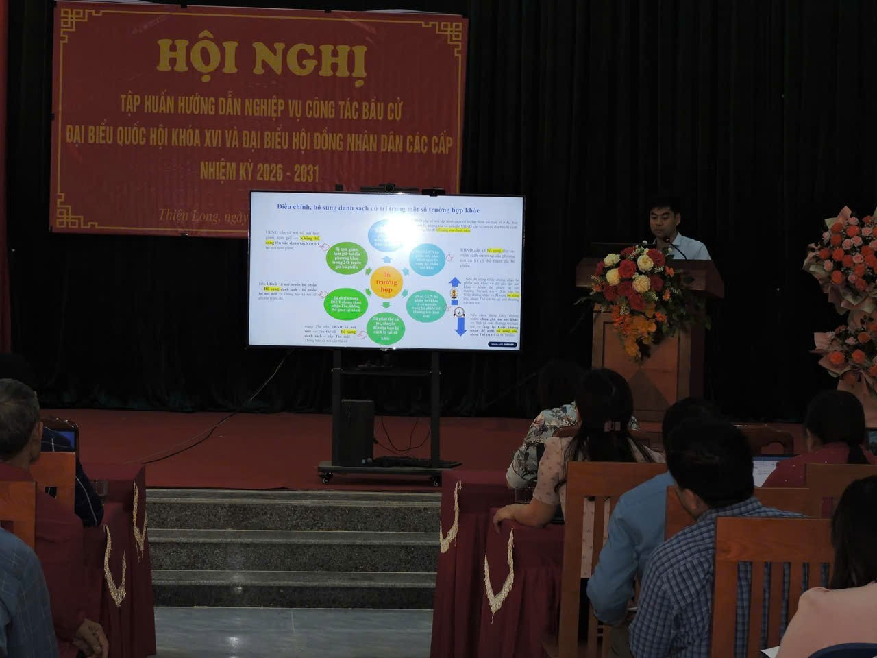 ỦY BAN BẦU CỬ XÃ THIỆN LONG TỔ CHỨC HỘI NGHỊ TẬP HUẤN HƯỚNG DẪN NGHIỆP VỤ CÔNG TÁC BẦU CỬ ĐẠI BIỂU QUỐC HỘI KHÓA XVI VÀ ĐẠI BIỂU HĐND CÁC CẤP NHIỆM KỲ 2026 – 2031