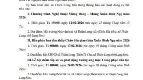 Sáng ngày 03/02/2026, Đảng ủy xã Thiện Long long trọng tổ chức Tọa đàm kỷ niệm 96 năm Ngày thành lập Đảng Cộng sản Việt Nam (03/02/1930 – 03/02/2026).Buổi tọa đàm là dịp để các đại biểu cùng nhau ôn ...