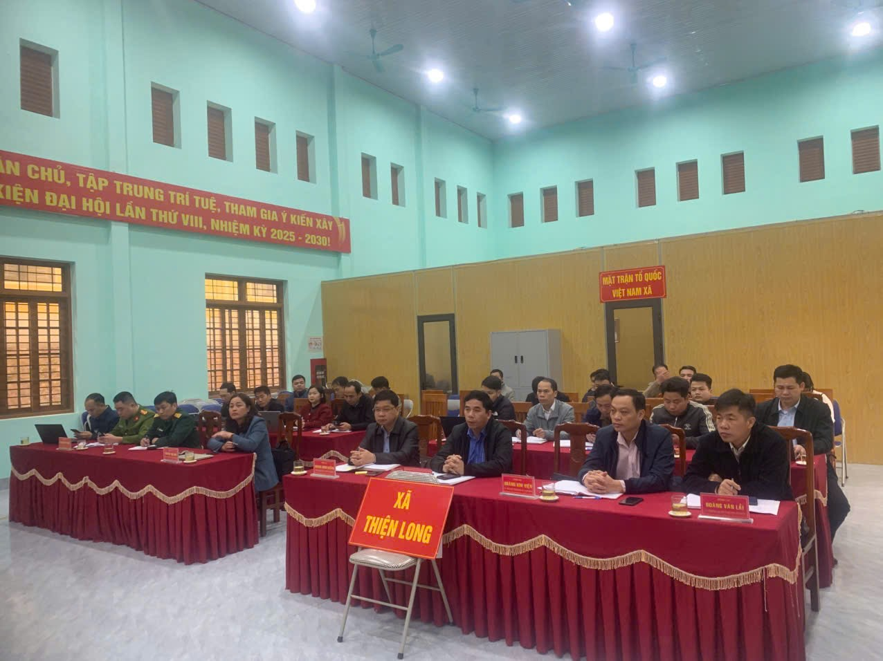 Tại điểm cầu xã Thiện Long, tham dự Hội nghị có Thường trực Đảng ủy, Thường trực HĐND xã, lãnh đạo UBND xã, Ban Chỉ đạo bầu cử, Ủy ban Bầu cử xã; Ban Thường trực Ủy ban MTTQ Việt Nam xã; Bí thư chi bộ, Trưởng thôn; Trưởng Ban Công tác Mặt trận và các chi hội đoàn thể thôn trên địa bàn.